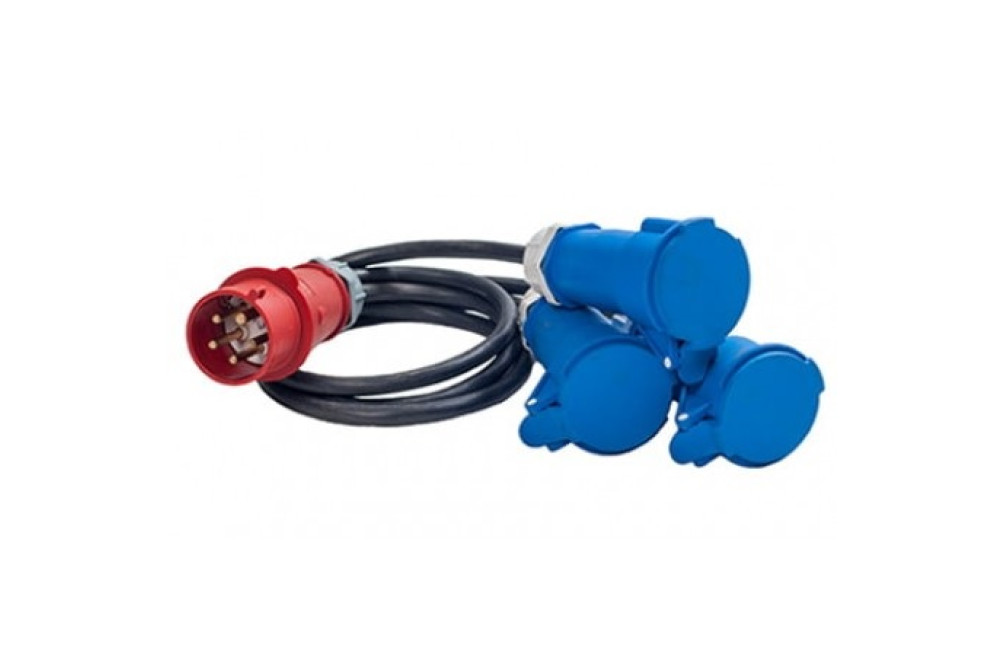 Переходник 380В фишка 3P+PE+N 32А - 3x 220В