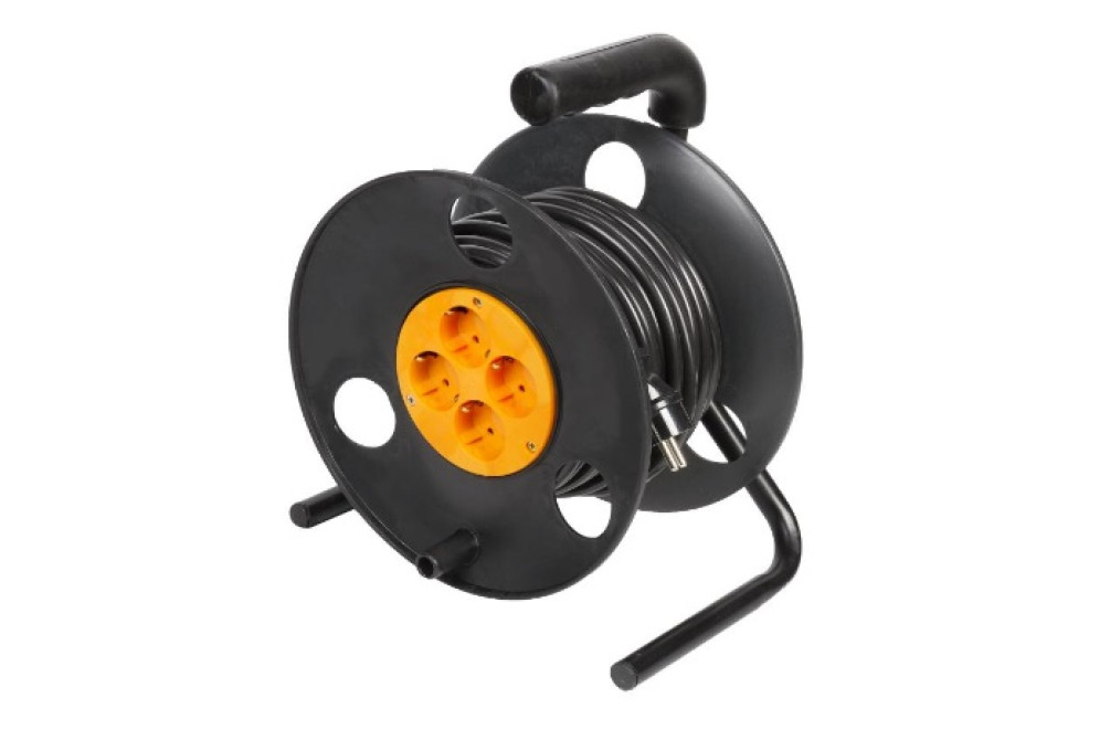 Напряжение сети 220 Вт. Длина 50 м. 4 розетки. Максимальная нагрузка 3,5 кВт.