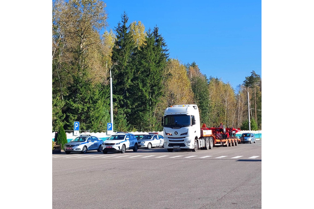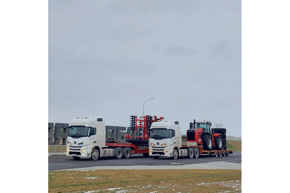 - седельными тягачами SHACMAN X6000 2023 года выпуска, низкорамным раздвижным тралом FAYMONVILLE для перевозки негабаритных грузов и трал-платформой ARB грузоподъемностью до 31 т, шириной с уширителями до 5,0 м, высотой до 5 м., рабочей длиной до 16.