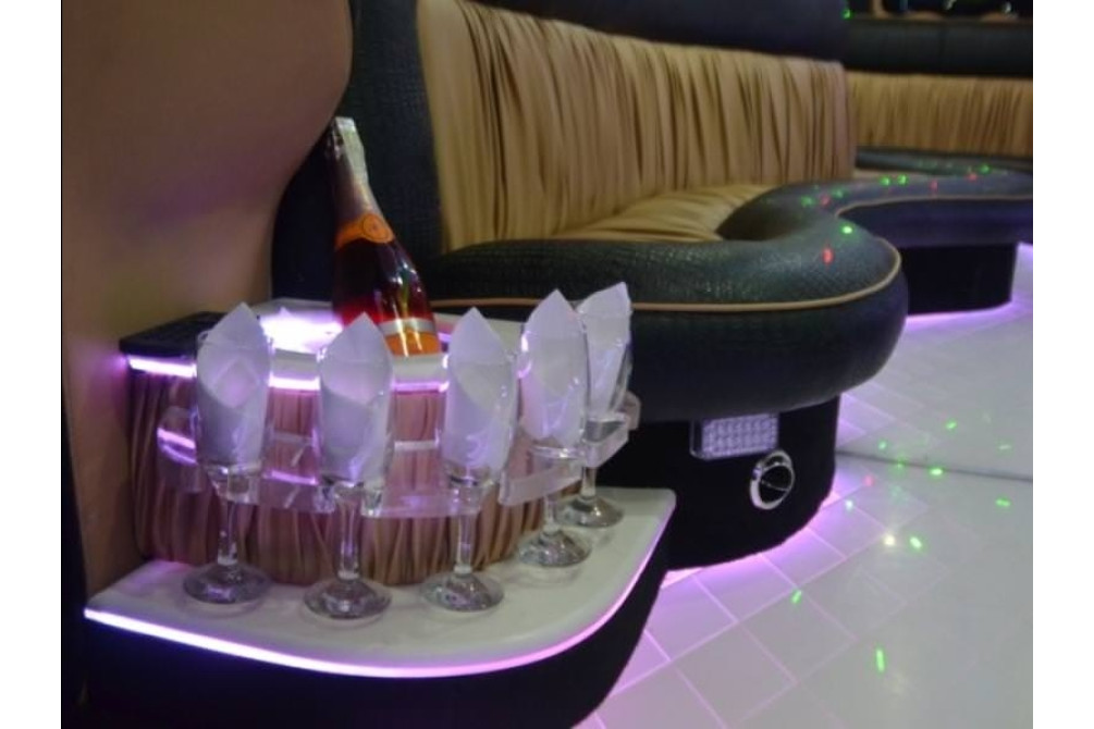 20 мест. Белого цвета. Кожаный салон. 2012 год выпуска. Выезд за пределы г. Минска оплачивается отдельно Климат контроль. CD Player. Бокалы для шампанского. Стаканы для алкоголя / сока. Неоновая подсветка салона. Украшения по запросу.