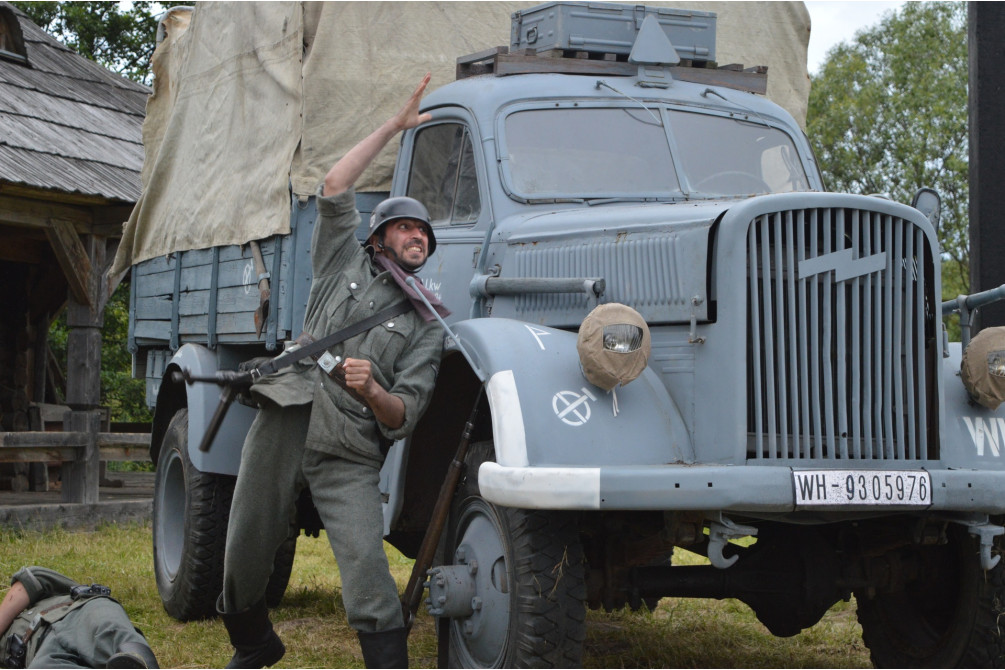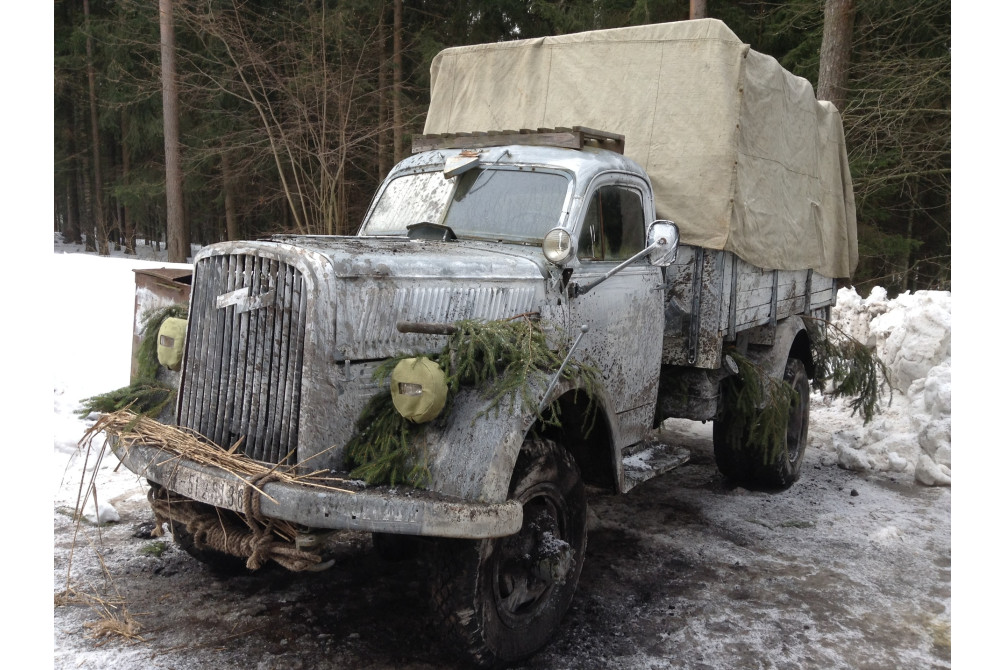 В нашем музее имеются две реконструкции легендарного грузовика, одна из которых с приводом на все колёса. Машины делались на базе узлов и агрегатов советских грузовиков, а кузовные детали были изготовлены вручную по доподлинным чертежам. Однако кое-какие оригинальные запчасти удалось отыскать на аукционе – эмблему, задний номер и фонарь.
