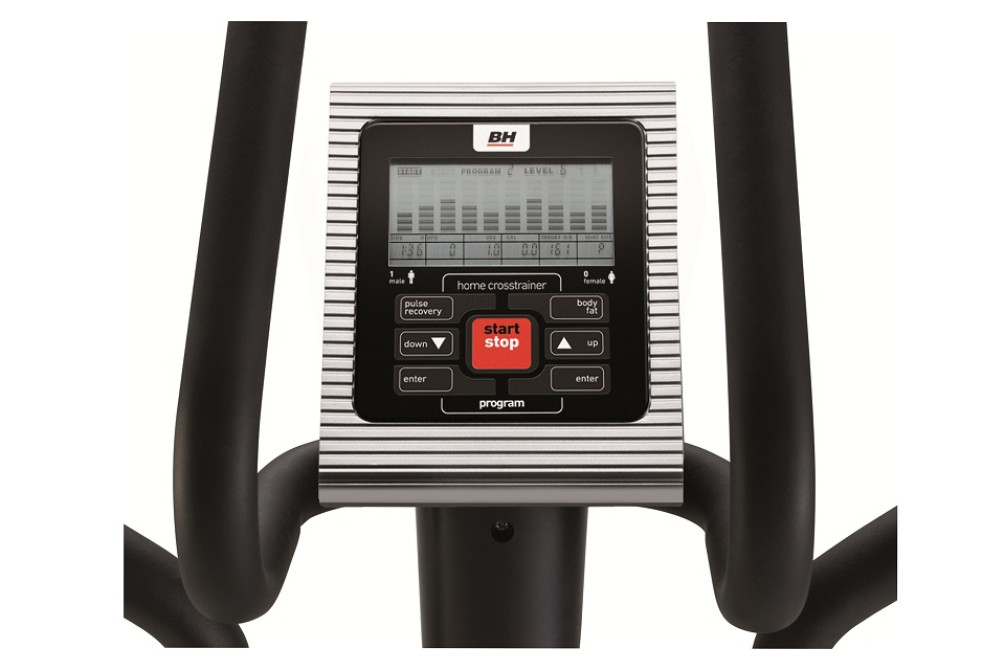 Электромагнитный эллипсоид BH Fitness Athlon Program G2336N Эллиптический тренажер для регулярного домашнего использования. Отличается приятным, обтекаемым дизайном и компактностью, вкупе с надежностью и разнообразием программ. Электромагнитная система нагружения, обеспечивающая плавное и бесшумное движение педалей. Регулировка нагрузки электронная. Длина шага 36 см. Инерционная система 10 кг. Регулировка педалей по горизонтали. Максимальный вес пользователя 105 кг. Питание 220 В. Компьютер: LCD монитор, отображающий время, скорость, обороты в минуту, дистанцию, расход калорий, пульс, Ватты. 16 программ, из них 6 предустановленных тренировочных программ, 4 пульсозависимых программы (HEART RATE CONTROL), 4 пользовательских программ. 16 уровней нагрузки. Датчики пульса в подвижных рукоятках тренажера. Транспортировочные ролики. Компенсаторы неровностей пола. Габариты: (ДхШхВ) 132 х 62 х 160 см. Вес 43 кг.