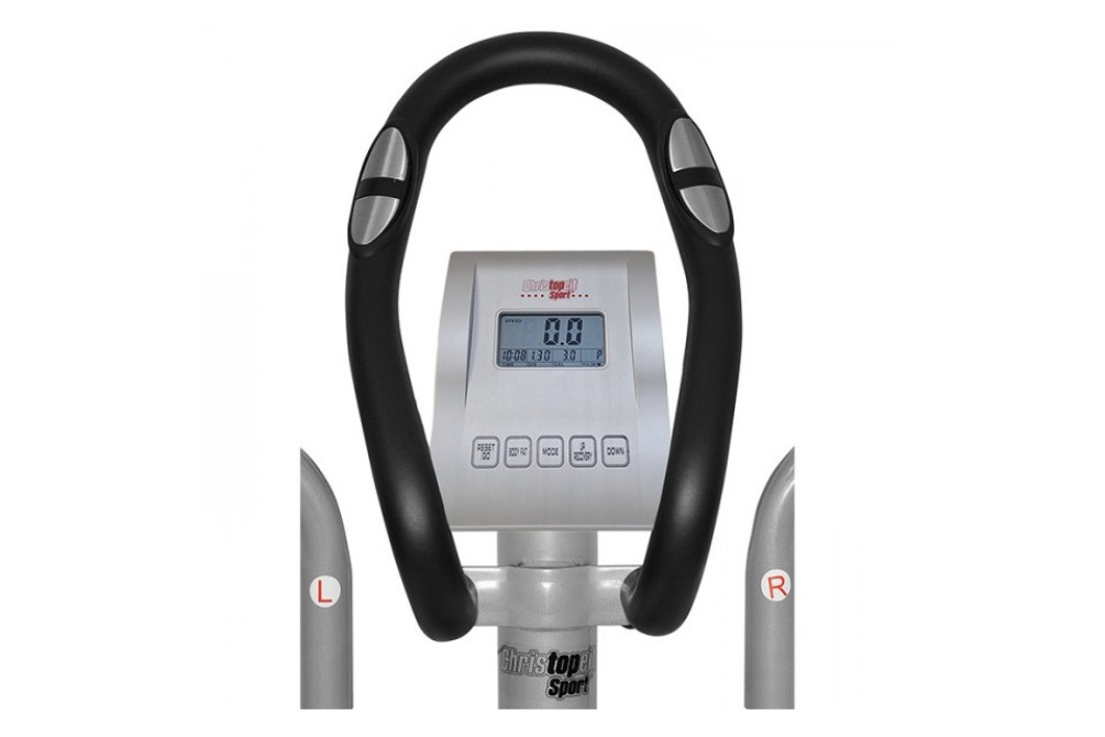 Магнитный эллиптический тренажер Christopeit Sport Crosstrainer CS 5 Максимальный вес пользователя 140 кг. 8 уровней нагрузки. Вес маховика 8 кг. Контактные пластины измерения пульса. Показания компьютера: скорость, частота вращения, пройденная дистанция, время тренировки, расход калорий, пульс. Программы тренировки по времени, расстоянию и расходуемым калориям со звуковым сигналом о достижении допустимых значений. Педали с нескользящей поверхностью. Регулировка положения педалей. Транспортировочные ролики. Компенсаторы неровности пола. Размеры: (ДхШхВ) 140 х 59 х 161 см. Вес тренажера 40 кг.