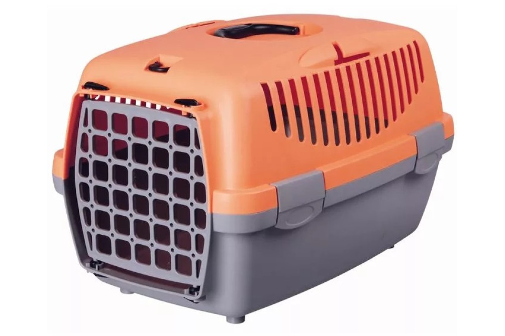 Переноска оснащена пластиковой дверцей, на ее крыше расположена съемная ручка.