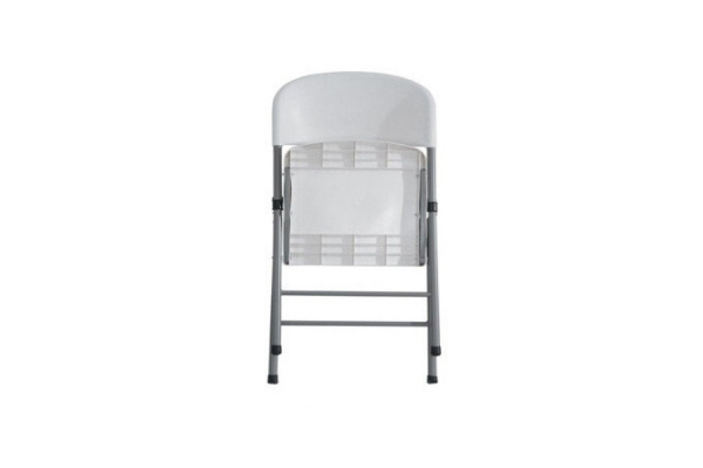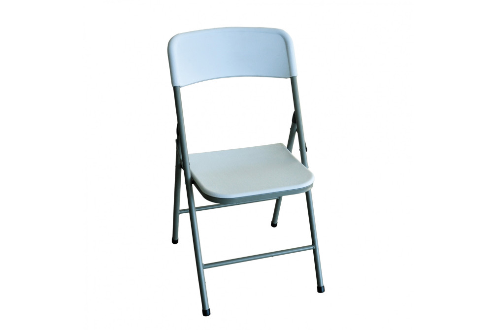 Складной стул из стальных труб и высокопрочного пластика не боится влаги и перепадов температуры.