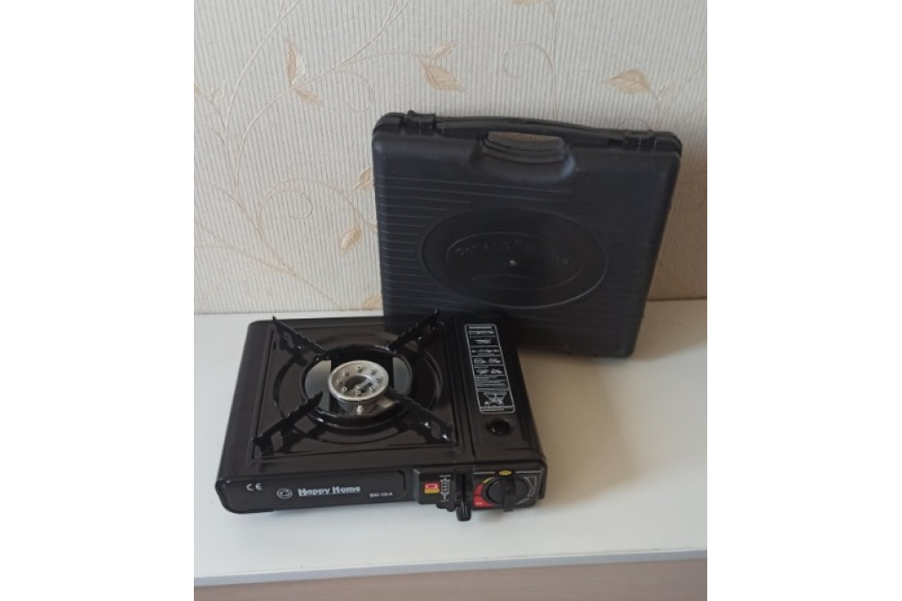Портативная газовая плитка с пьезорозжигом в чемоданчике, работает от газового балончика или от газового балона.
