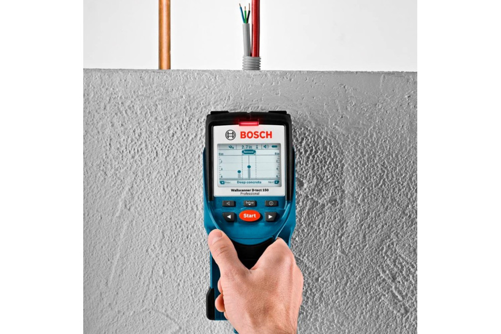 Универсальный детектор Bosch D-tect 150 SV помогает обнаруживать черные и цветные металлы, электропроводку, деревянные конструкции и пластиковые трубы. Предусмотрена цифровая индикация свойств материала. Благодаря сигнальному режиму (Signal View/SV), модель указывает с максимальной точностью на объекты, расположенные вплотную друг к другу.