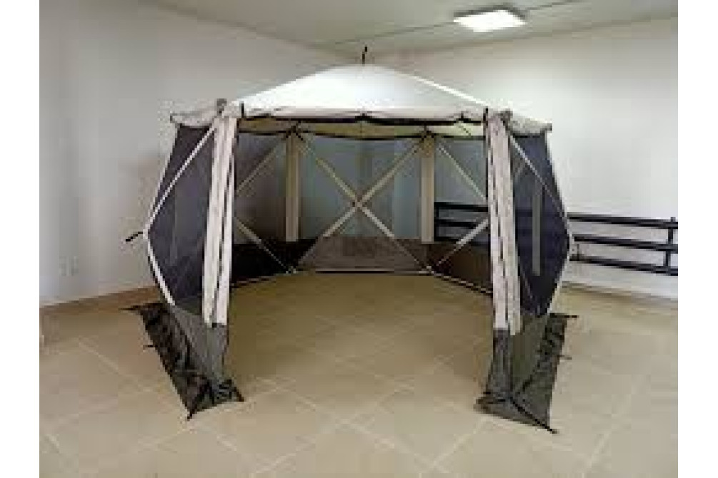 Палатка-шатер большой 2,3 м высота. Собирается очень быстро. Установка Зазаймет не больше 10 мин. Полностью в маскитной сетке высокого качества. Все стенки могут закрываться ( опускаются) не продуваемой тканью на молнии.
