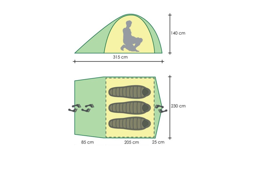 Современная конструкция позволяет в первую очередь установить верхний тент, что сохраняет спальное место сухим даже при сборке в сильный дождь. В данной модели можно убрать спальное место и использовать палатку для хранения вещей.